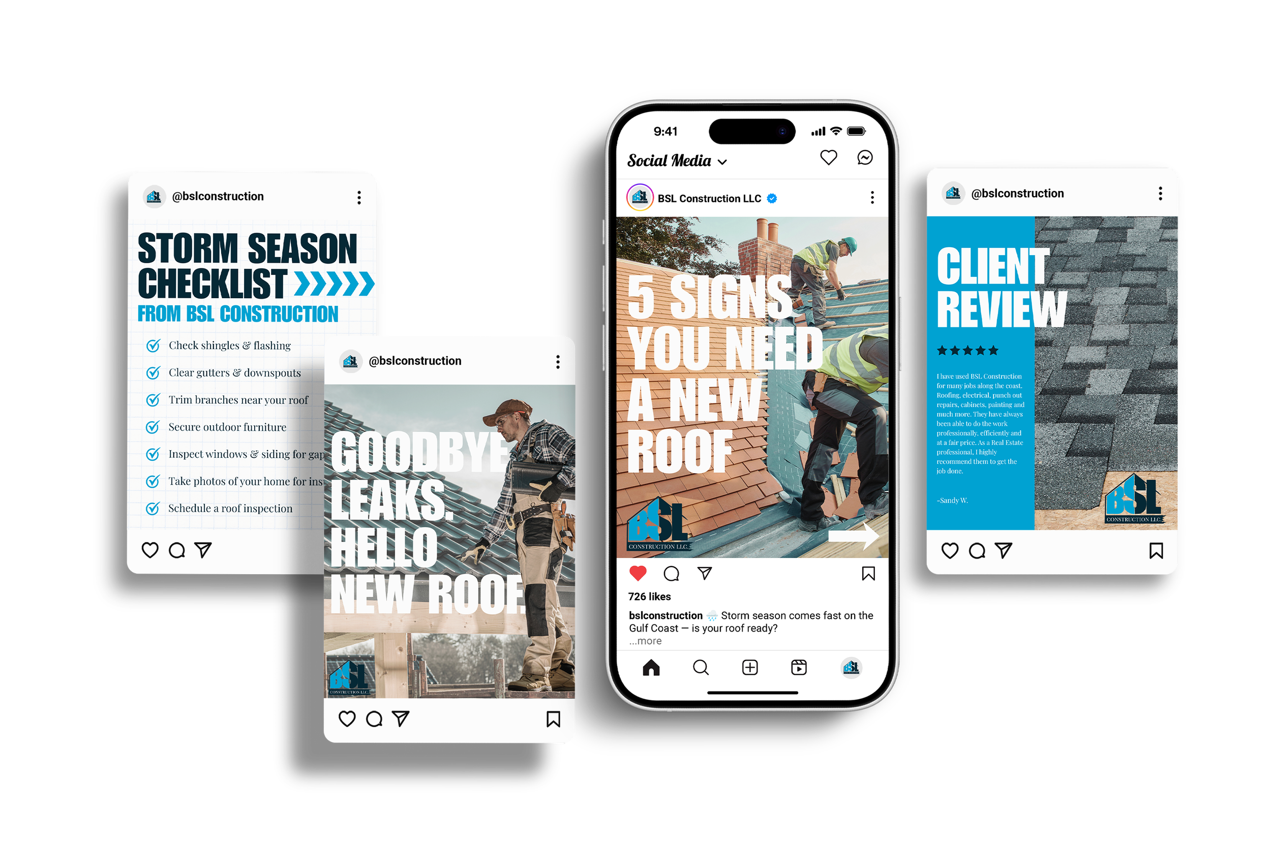To support the strategy, I developed example social media content and ad concepts — including educational posts like “5 Signs You Need a New Roof” — demonstrating how the brand could communicate clearly and consistently across platforms.