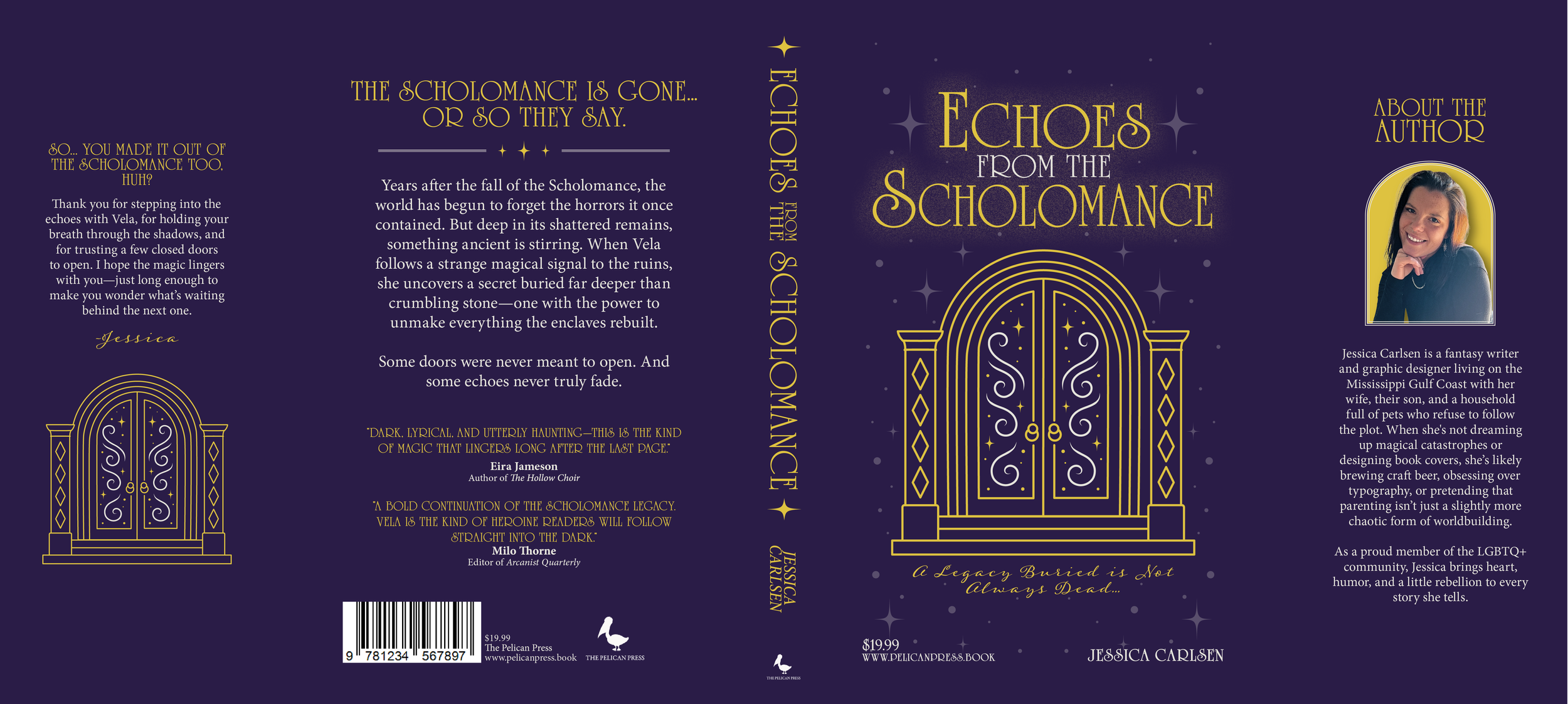 Design a production-ready book jacket and interior layout for a fictional continuation of The Scholomance series; maintaining visual continuity with the established world while expanding its tone and maturity.